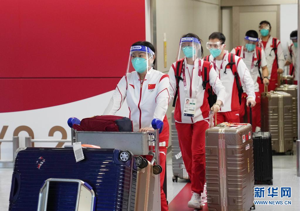 当日,参加东京奥运会的中国体育代表团部分成员抵达东京。