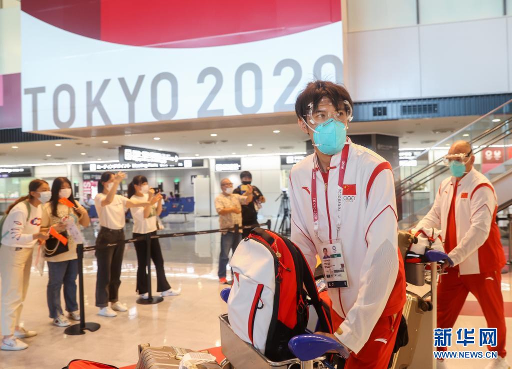 当日,参加东京奥运会的中国体育代表团部分成员抵达东京。