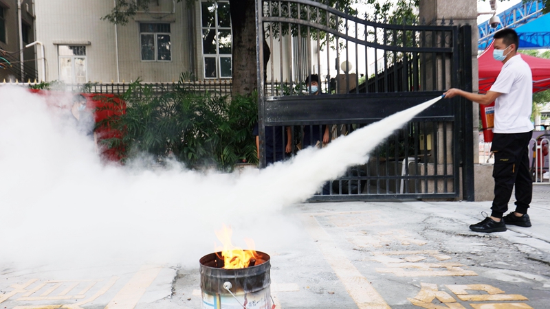 活动最后,在志愿消防员的讲解下,全体参与演练的人员学习了灭火器的使用、火场逃生知识,并分组进行灭火演习,现场使用灭火器扑灭实践用的的火势。理论指导实践、实践检验理论,本次活动极大地提高了参与人员防火、逃生、自救能力。