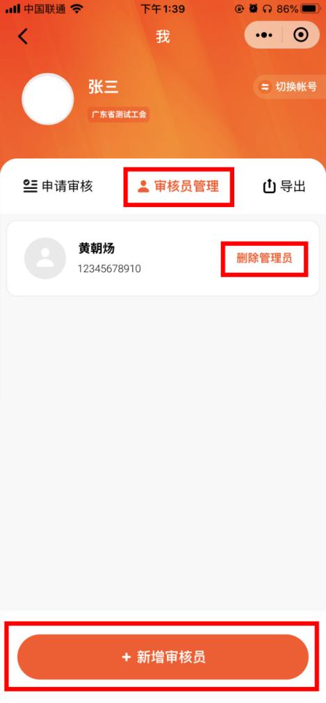 (1)点击“审核员管理”,可查看所属工会的审核员列表;