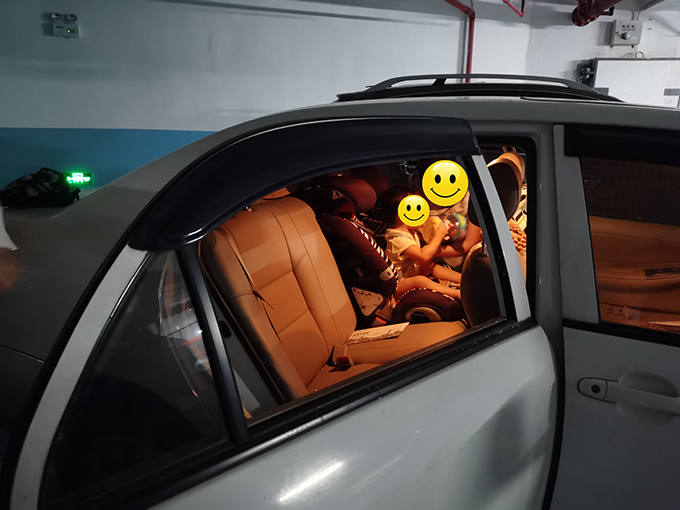 到达现场后,民警发现被反锁的轿车车窗紧闭,完全无法正常打开。由于被困车内已经有一段时间,小孩情绪波动,在车内不停哭闹。据戴女士介绍,当天中午在地下停车场停好车,准备把坐在后排安全椅上的孩子抱下车的时候,自己不小心将车钥匙遗落在车内。因为私家车的防盗功能比较机械,导致车门关闭后,轿车自动落锁。由于地下三层的停车场没有手机信号,耽误了一些时间,自己焦急万分,出了停车场后果断报警,并在业主群发布信息求助。