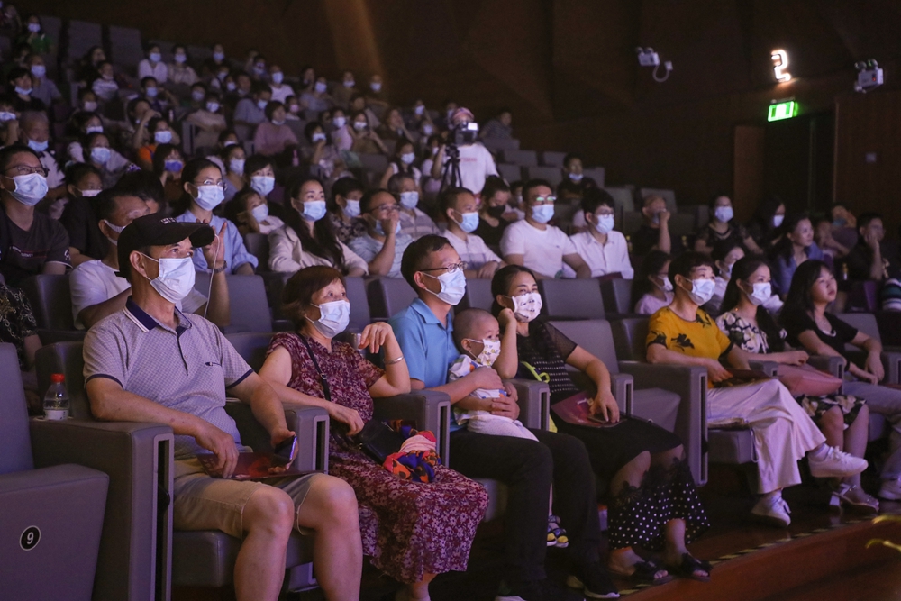 “血洗的历史怎能被诋毁……”当晚,黄梅戏腔所带来的震撼让宝安区青少年宫掌声不断,观众们为剧中主角共产党人林雨霏的革命事迹所感动,艺术性与思想性所碰撞出的火花、精致的服化道,以及演员们令人共情的表演让这部舞台剧备受欢迎。带着孩子前来的观众陈先生告诉记者,自己平时也会带小朋友去看舞台剧,都是看现代话剧、音乐剧居多,这是第一次现场感受戏曲与舞台剧结合的魅力,而红色题材让这部现代黄梅戏舞台剧更加熠熠生辉,令人振奋。