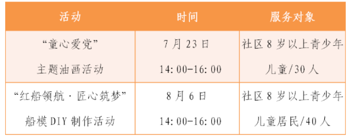 服务内容:少年集结号·加油向未来——大汪山社区暑期夏令营(影视观赏,党史学习,党员故事,手工制作等)