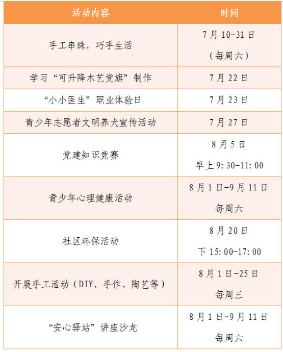 服务内容:红花园社区2021年儿童青少年暑期课堂(学员安全照看、课业辅导、书籍阅读、手工课、自然观察课、科普课)