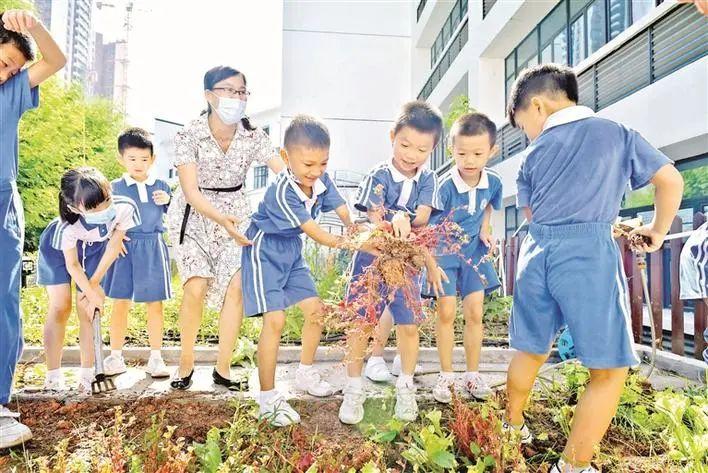 宝安区今年开始进行暑期托管试点。暑期托管期间,试点学校除了有老师对孩子们进行假期作业辅导外,还开放了图书馆、运动场馆、党史学习教育室等资源设施,开展自主阅读、电影赏析、韵律操、参观生物实验、团建游戏、棋类比赛等。托管学生每天在校期间的动向,跟班教师均通过微信群适时进行图片直播。