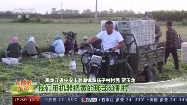 黑龙江省宁安市渤海镇双庙子村村民贾玉龙:对于我们割韭菜来说也有很大的门道,割完这茬再割二茬,割完二茬之后就不需要再割了。就让它正常生长一夏天,到秋天它逐渐就变黄了,我们用机器把黄的那部分割掉,然后扣(大)棚,我们没有闲着的时候。