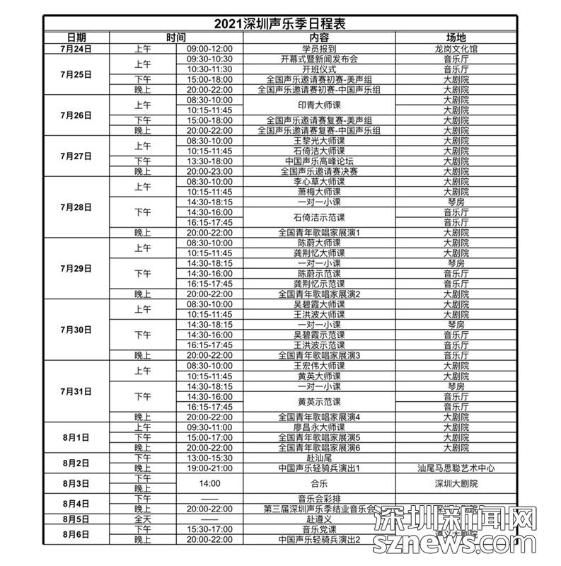 读特客户端·深圳新闻网2021年7月25日讯(记者 李云云 通讯员 卢允 汤瑛 杨丽)三年,深圳声乐季再启航!7月25日上午,第三届“深圳声乐季•中国声乐人才培养计划”在龙岗文化中心正式开幕。本届“深圳声乐季”将从7月25日持续至8月6日,先后在深圳龙岗、汕尾及遵义等地举行。从全国范围内公开选拔的40名新学员汇聚,参加“中国声乐人才培养计划”“全国声乐邀请赛”“全国青年歌唱家展演”“中国声乐高峰论坛”“中国声乐轻骑兵音乐会”“下基层演出”等六大板块活动。中国音乐学院院长王黎光,上海音乐学院院长廖昌永等13位中外艺术家,将开讲大师公开课,联袂奉献一场声乐饕餮盛宴。