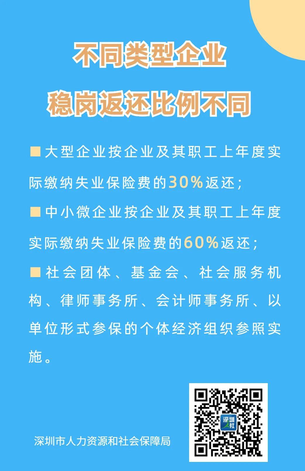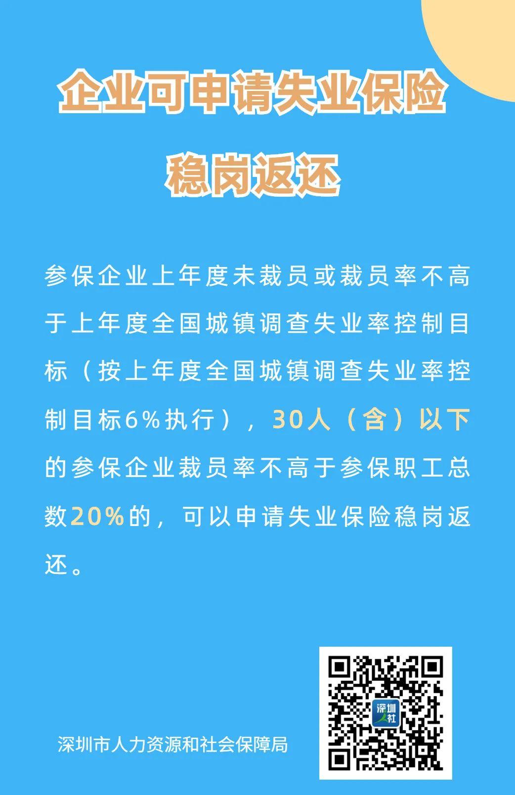 一、实施普惠性失业保险稳岗返还政策。请按照《人力资源社会保障部 国家发展改革委 教育部 财政部 中央军委国防动员部关于延续实施部分减负稳岗扩就业政策措施的通知》(人社部发〔2021〕29号)、《广东省减轻企业负担推动企业高质量发展工作方案》(粤人社发〔2021〕13号)和相关政策指引规定办理。参保企业上年度未裁员或裁员率不高于上年度全国城镇调查失业率控制目标(按上年度全国城镇调查失业率控制目标6%执行),30人(含)以下的参保企业裁员率不高于参保职工总数20%的,可以申请失业保险稳岗返还。对大型企业按企业及其职工上年度实际缴纳失业保险费的30%返还;对中小微企业按企业及其职工上年度实际缴纳失业保险费的60%返还;社会团体、基金会、社会服务机构、律师事务所、会计师事务所、以单位形式参保的个体经济组织参照实施。