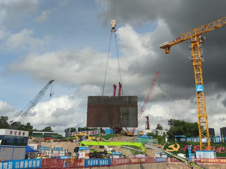 一切准备就绪,安全管理人员发出“现场已经具备吊装条件,可起吊”的指令,钢板墙逐块往预先设计好的“轨道”输送,直至最后一块钢板吊装完成。总过程持续8小时,比预计用时缩短近3小时。