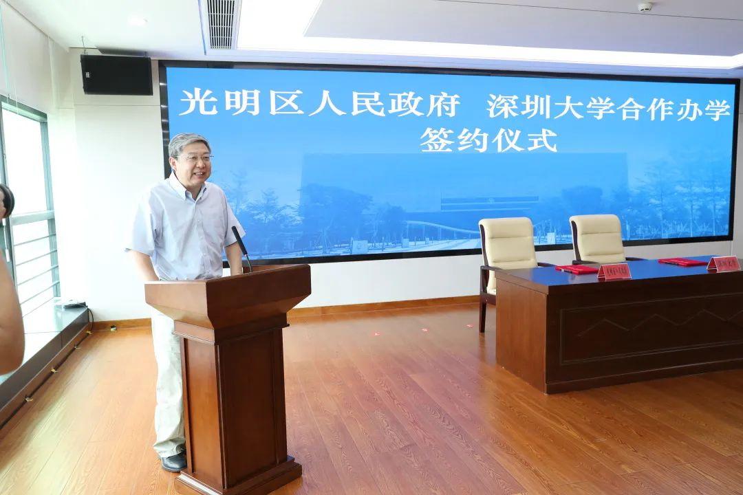 光明区区长蔡颖表示,深圳大学是深圳本土的大学,自建校以来,与改革开放共奋进,与经济特区共成长,是深圳一手承办、一手缔造、一手发展的高水平综合性大学。