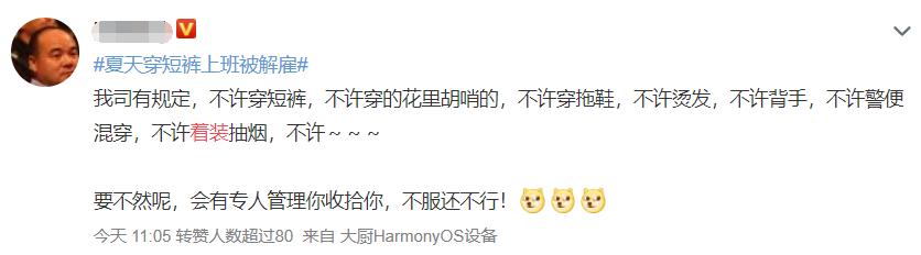 还有部分网友认为:员工上班应遵守公司着装规定,否则会影响公司形象与纪律