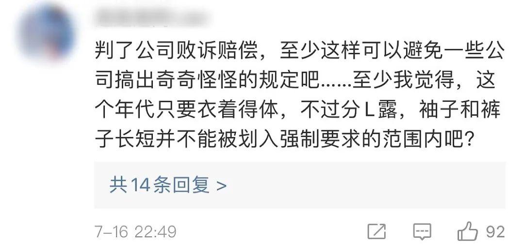 也有网友认为:公司不应对员工着装做出强制规定,因着装不当开除员工是不合理的