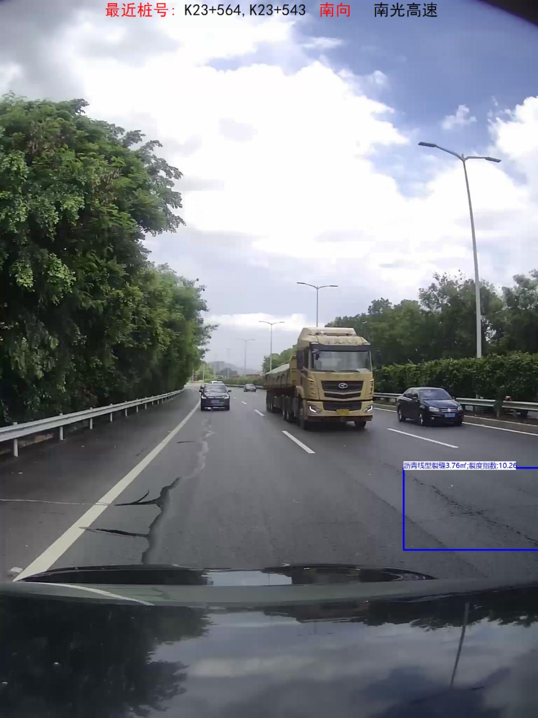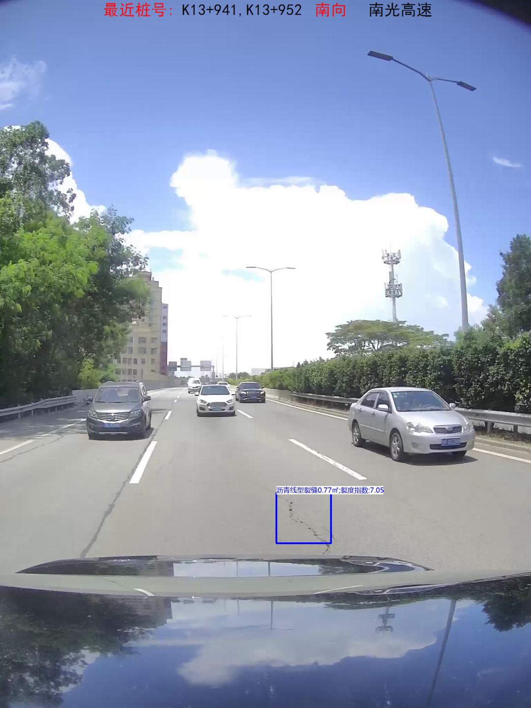 经过近一年的试验,智能巡检病害识别准确率达到94.8%,大幅提高了养护工作效率,准确、高效发现路面及交安设施病害,保障作业人员安全,减少对交通的影响。