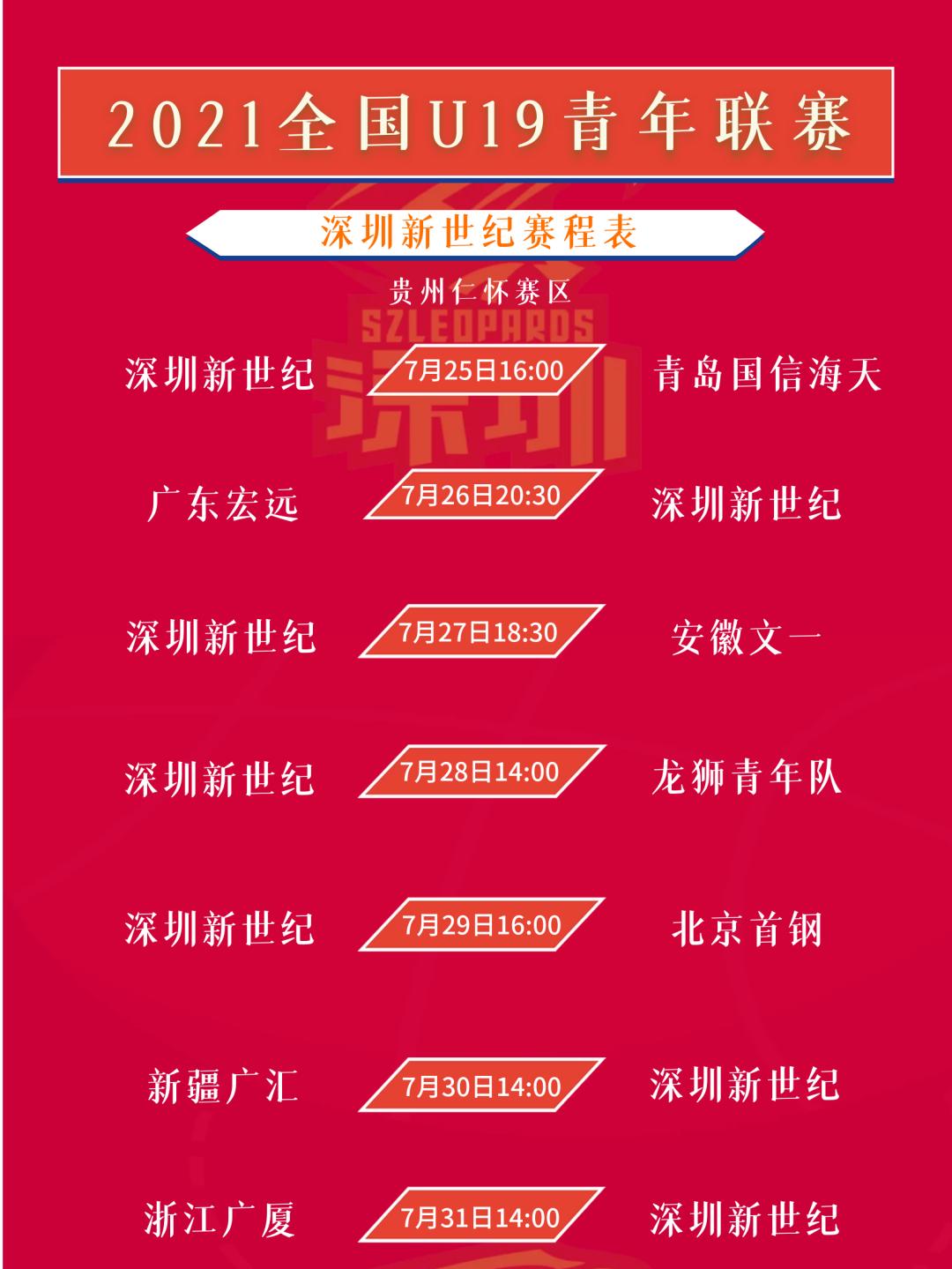 7月28日14:00,深圳新世纪将对阵龙狮青年队,加油!
