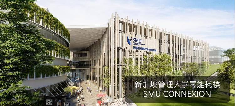 新加坡管理大学零能耗楼 SMU Connexion 是新加坡市中心第一座在地零能耗建筑,即通过建筑屋面铺设的太阳能光电板供应建筑,实现可持续性能源使用。建筑应用了多种绿色策略和技术,包括新型被动置换制冷系统,智能LED照明和预测性智能建筑控制系统等。