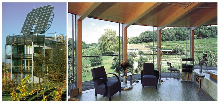太阳能旋转屋The Heliotrope(1994年)是全球第一个正能量建筑,是第一个能源生产多于消耗的建筑:无排放、二氧化碳中和、100%再生产。