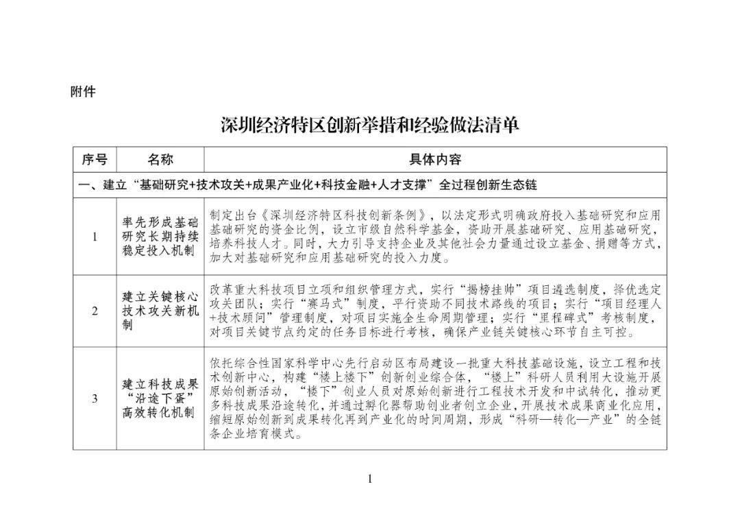 附件:深圳经济特区创新举措和经验做法清单
