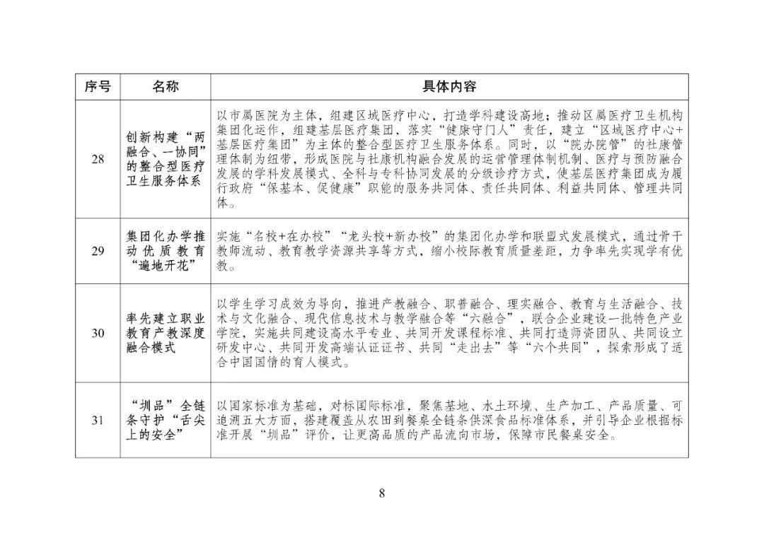 一、本次推广的有关创新举措和经验做法共5方面47条,主要包括建立“基础研究+技术攻关+成果产业化+科技金融+人才支撑”全过程创新生态链、建立健全促进实体经济高质量发展的体制机制、构建以规则机制衔接为重点的制度型开放新格局、创新优质均衡的公共服务供给体制、创新推动城市治理体系和治理能力现代化等,鼓励各地结合实际学习借鉴。