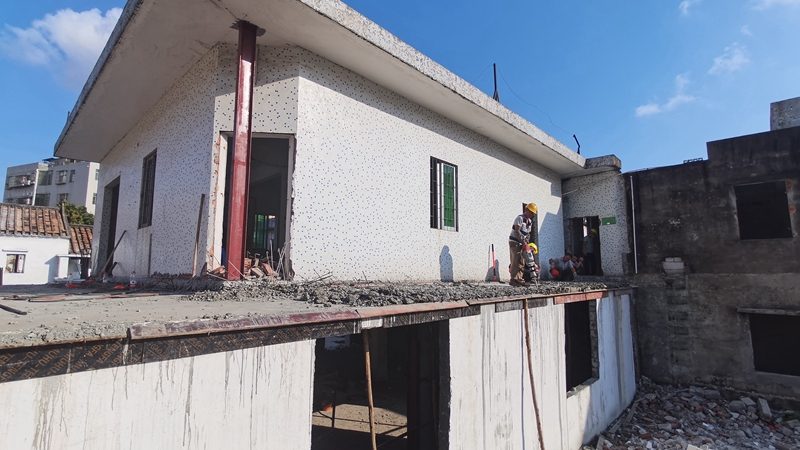 此次拆除的建筑为建设使用多年的临时工棚,现场共有12栋建筑,面积约7000平方米,当天共拆除其中3栋、建筑面积2600平方米。剩下部分将陆续进行拆除,预计本月底前全部拆除完毕。