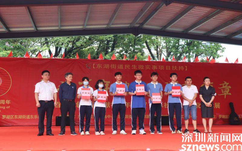 随后的深圳慈善会东乐社区公益基金捐款表彰以及优秀学子表彰将活动推向高潮。涓涓细流汇成大海,点点星光点亮银河,一份爱心,一份希望,一份力量,东乐社区党委搭建的多方参与社区治理的互助平台东乐社区公益基金,三年来帮助了上千需要帮助的群体,公益基金的发展离不开爱心企业、爱心居民的助力,今年又有4家爱心企业及多位居民进行了捐款,让爱心传递,引领社区公益文化,弘扬了邻里友善、乐善好施、守望相助的社区正能量,让公益成为东乐的“一张名片”。优秀学子代表的发言更是激励了社区莘莘学子,刻苦学习知识,坚定理想信念,共同营造社区浓厚学习氛围。由东乐老协、乐群老协、吉思舞蹈带来的三个舞蹈展示了对党深深的热爱之情。接下来的节目有歌曲、舞蹈、诗歌朗诵、绘本戏剧、武术,精彩绝伦,用艺术演绎百年光辉历程,展示了中华儿女积极向上的精神面貌,给社区居民带来一场党建与艺术的熏陶活动。居民朋友们活跃在四周的党建作品展示区、歌颂区、心愿墙、党建文化区、调研区、公益基金宣传区,在欢快愉悦中学党史、感党恩、跟党走,提高了社区居民的党性与人文素养。