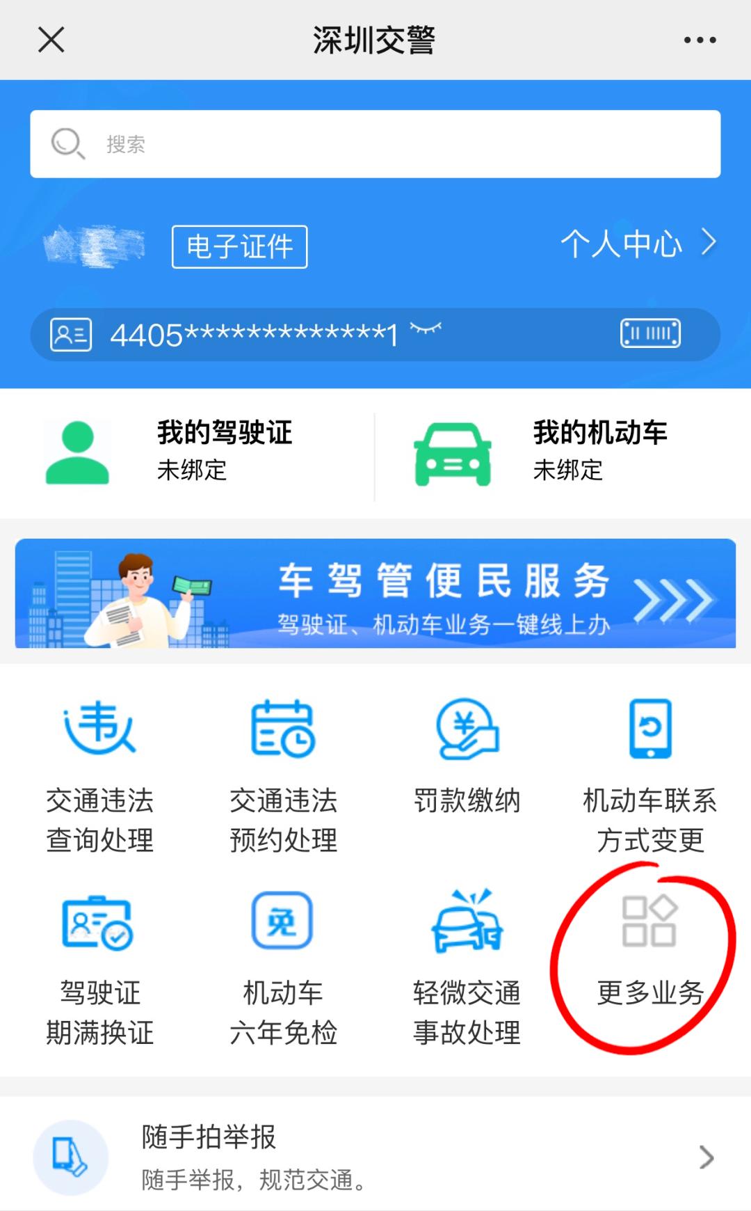 关注“深圳交警”“深圳车管所”微信公众号→登录“星级用户”→在主页点击“更多业务”→在驾驶证业务栏点击“更多业务”→选择“恢复驾驶资格(逾期一年以上未换证类)”业务。
