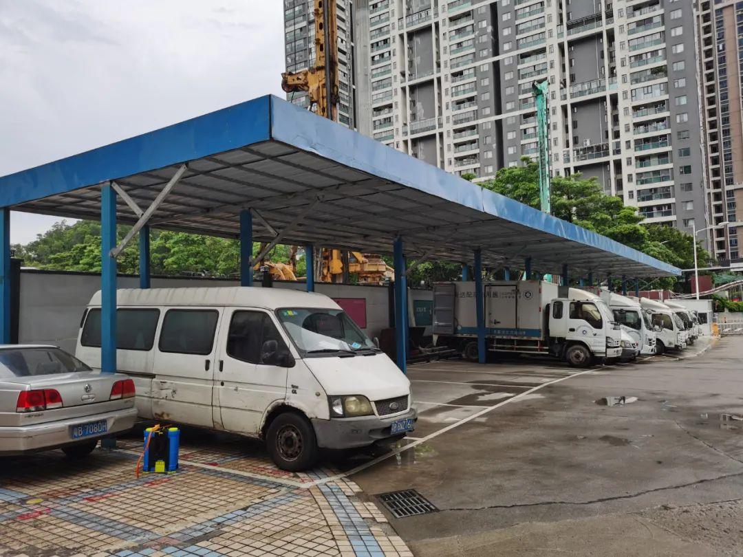 此外,为了保障货车停靠在西侧的安全,以及最大限度减少施工扬尘对货车布草的影响,市建筑工务署配合修建货车停车棚,并配水雾喷洒装置。