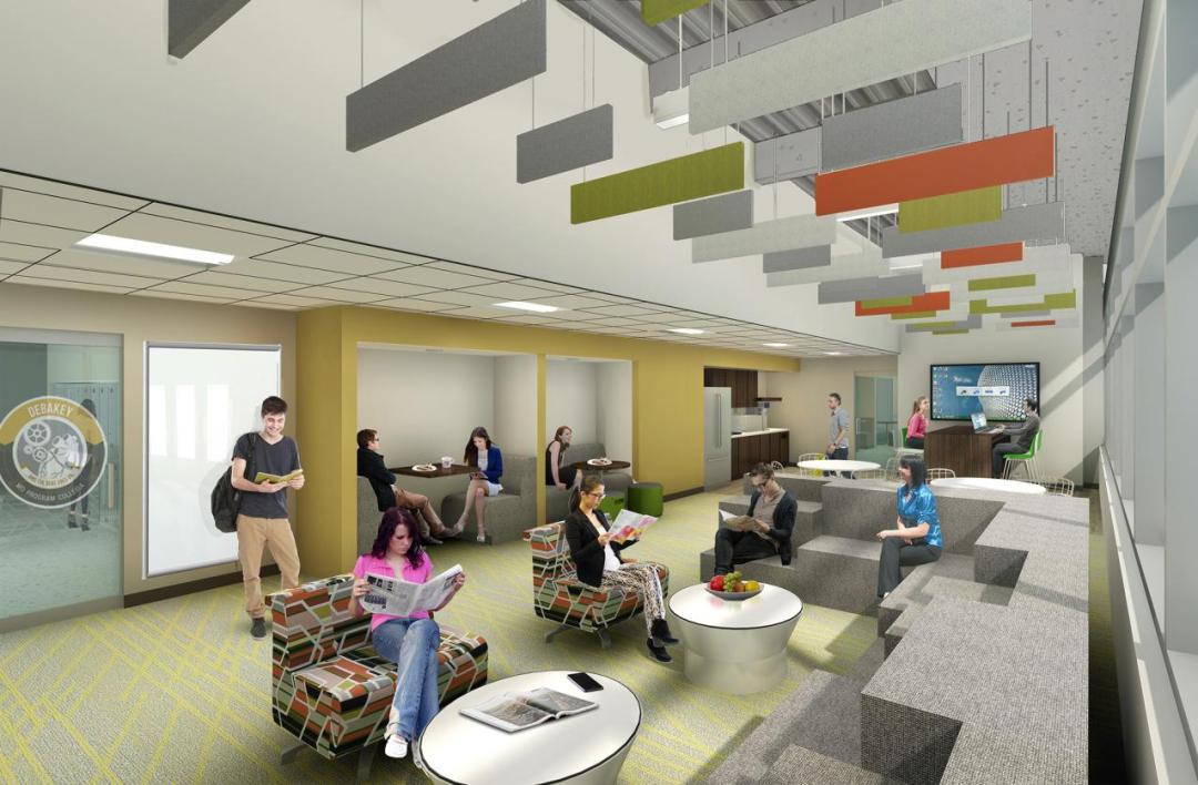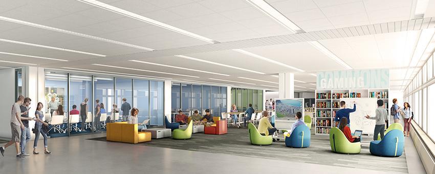 在两栋实验室之间设置了共享交流空间,满足科研人员正常试验检测工作的前提下,提供尽可能多的正式(学术会议室)和非正式(茶休区)交流空间,鼓励各科室科研人员之间的探讨和交流。