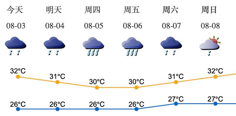 根据深圳气象台数据显示,今天(3日)深圳市阴天间多云,有间歇性(雷)阵雨;气温26-32℃;西南风3-4级,沿海、海区和高地阵风6-7级;相对湿度65%-100%。