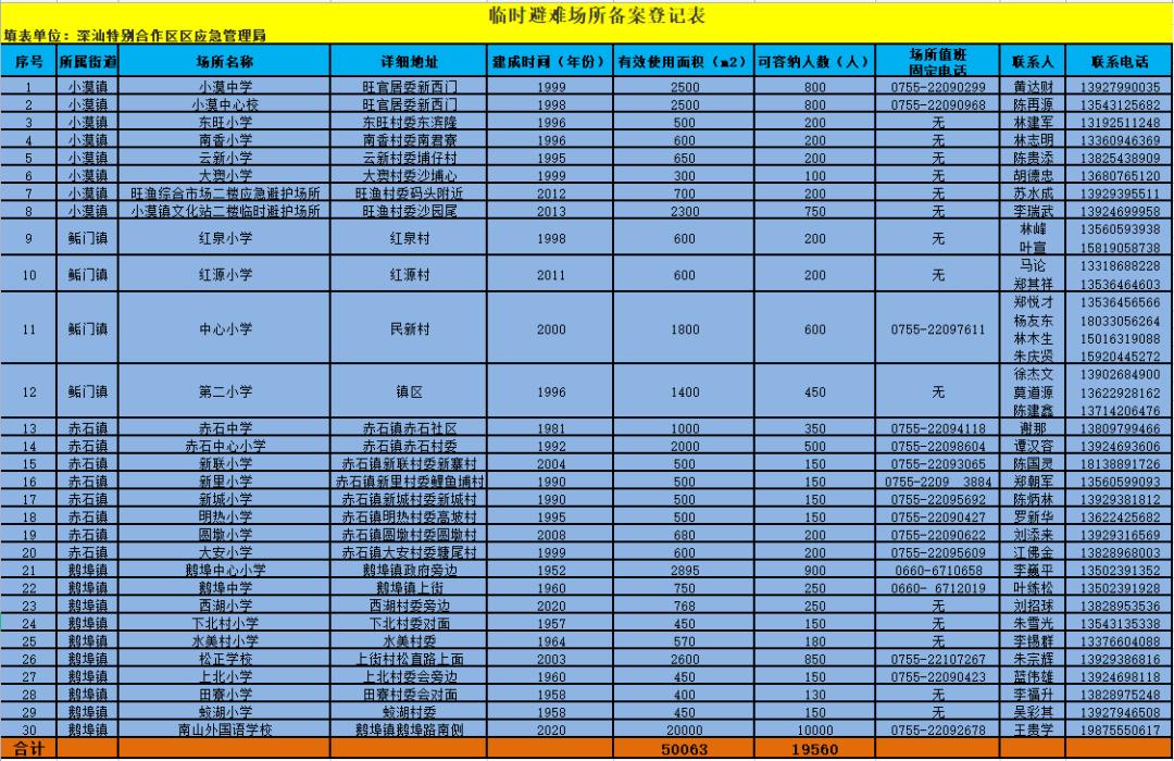 据深汕特别合作区应急管理局消息,目前全区共设有30个临时避难场所,用于受灾群众避险转移安置,以最大程度减轻台风、暴雨、洪涝、地质灾害等灾害的影响,切实保障人民群众的生命财产安全。