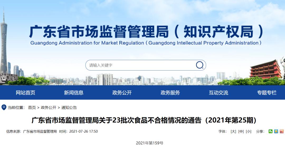 广东省市场监督管理局已要求辖区市场监管部门及时对不合格食品及其生产经营者进行调查处理,责令企业查清产品流向,采取下架、召回不合格产品等措施控制风险,并分析原因进行整改。