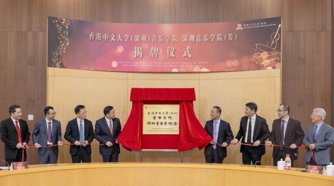 ▲市、区相关领导与香港中文大学(深圳)主管人员共同为香港中文大学(深圳)音乐学院揭牌