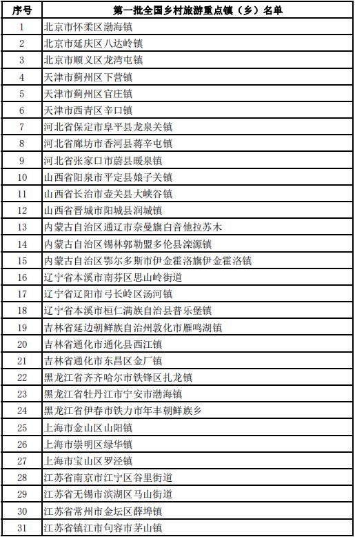 和第一批全国乡村旅游重点镇(乡)名单的公告