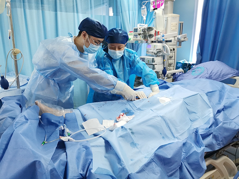 "肚子疼得实在受不了了,就去了离家最近的宝兴医院。"回忆起当天的情景,已经准备出院的李先生还心有余悸。在宝兴医院就诊过程中,他突然晕倒,失去意识、心跳和呼吸。宝兴医院急诊科反应迅速,第一时间进行了心肺复苏、人工体外心脏按压、气管插管等,但李先生的自主呼吸、心跳和意识仍没有恢复。"宝兴医院做了正确的判断,考虑是急性心梗,只有迅速开通急性闭塞的心脏供血动脉,患者才会有一线生机。"龙岗三院急诊科主任姜波说。