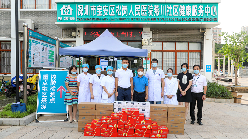 8月4日下午,燕罗街道对燕川社康中心坚持在核酸检测一线的医务人员表示慰问,并为医务人员送上水果、牛奶、八宝粥等慰问品。
