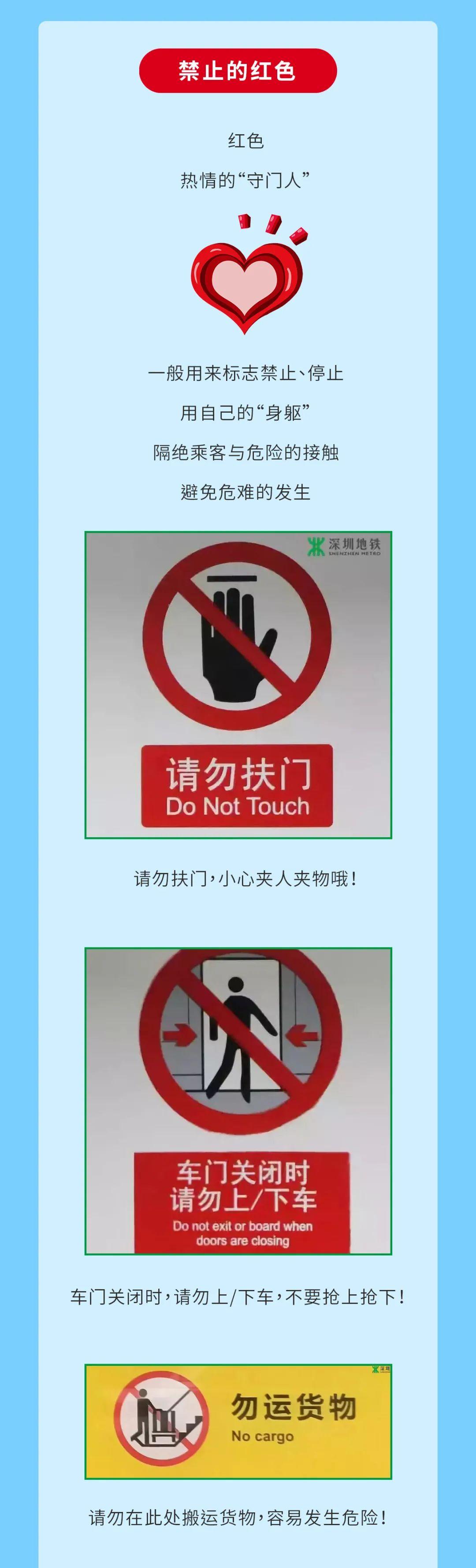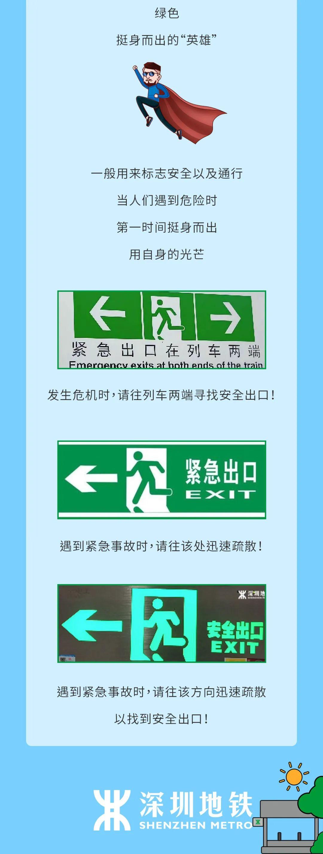 交通色彩意义非凡#出行安全不可忽视#在交通领域“红、黄、绿”等色彩一直都扮演着重要角色各种色彩的信号灯都有其不同的意义不了解这些色彩的意义可是没法好好乘车的哦深铁君今天就为大家科普一下地铁中的那些“色彩”//ShenzhenMetro//◆◆地铁中的“色彩”◆◆各种各样的颜色一直在各司其职陪伴着乘客们的日常出行当你发现“它们”时请给予更多的关注并按照“它们”的指示行事才能保障我们的出行安全咯~/·内容来源 深圳地铁·部分图片来源网络,如有侵权联系删除编辑 集团党群办公室本文由深圳地铁整理编辑发布,转载请注明来源·在看的,麻烦点一下再走▽