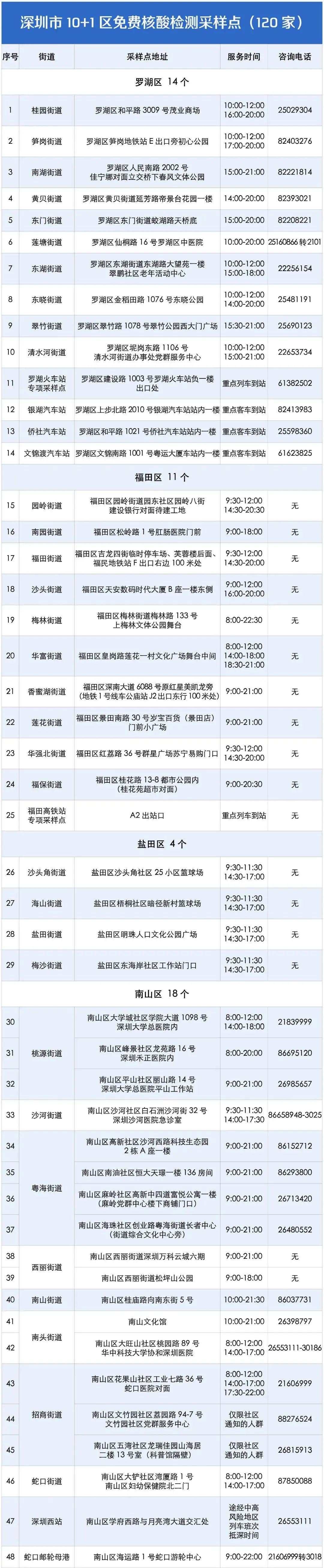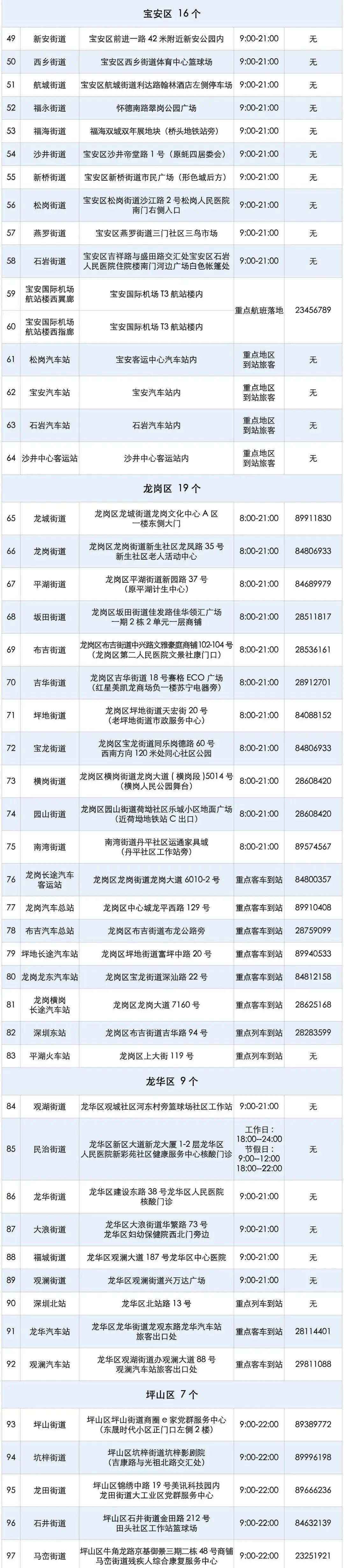 深圳全市设立120个免费核酸采样点!机场、火车站等开展落地核酸检测!