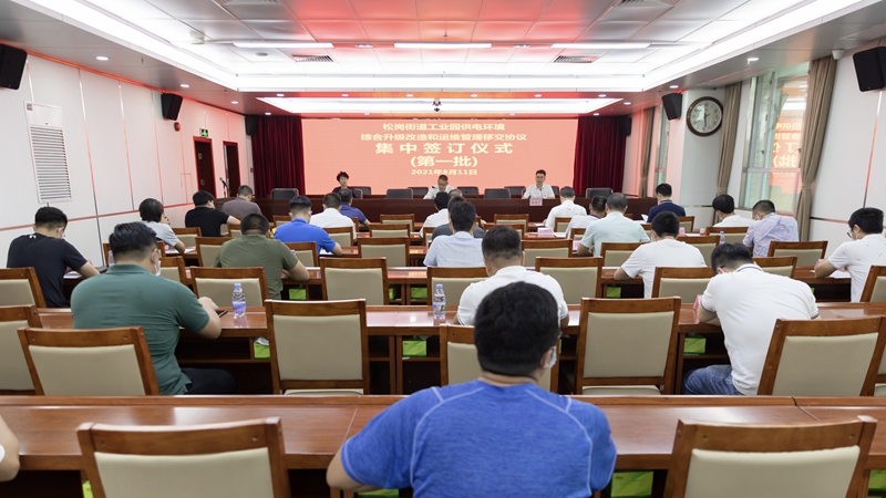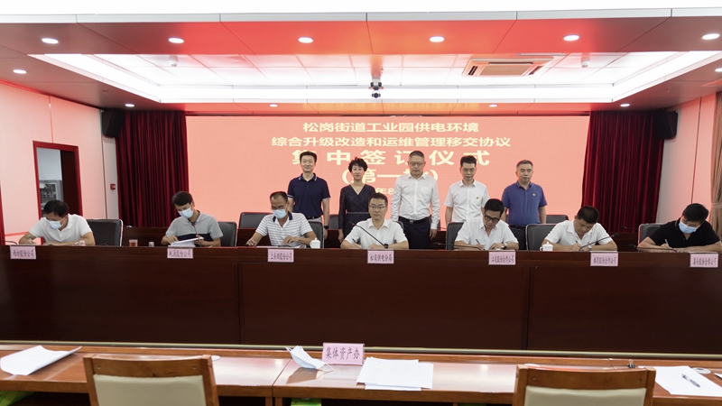 读特客户端·深圳新闻网2021年8月12日讯(记者 李可 通讯员 萧芷悠 钟宇豪)8月11日下午,松岗街道召开首批工业园供电环境综合升级改造和运维管理移交协议集中签订仪式,街道辖区内东方、楼岗、江边等股份合作公司通过多方努力,一马当先,率先与松岗供电分局签订了改造移交协议,正式打响了松岗街道工业园区供电环境综合升级改造工作的“第一枪”。