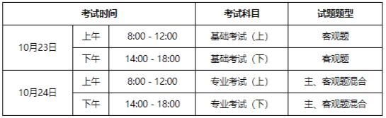 考试时间:10月23-24日,点击下表查看具体考试科目。