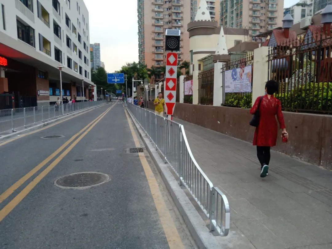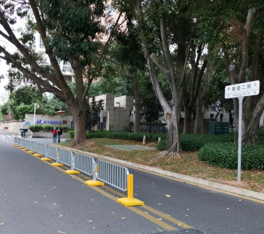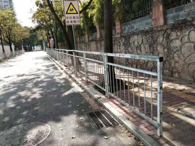为保障学生上学安全,福田管理局在学校附近道路增加了护栏。