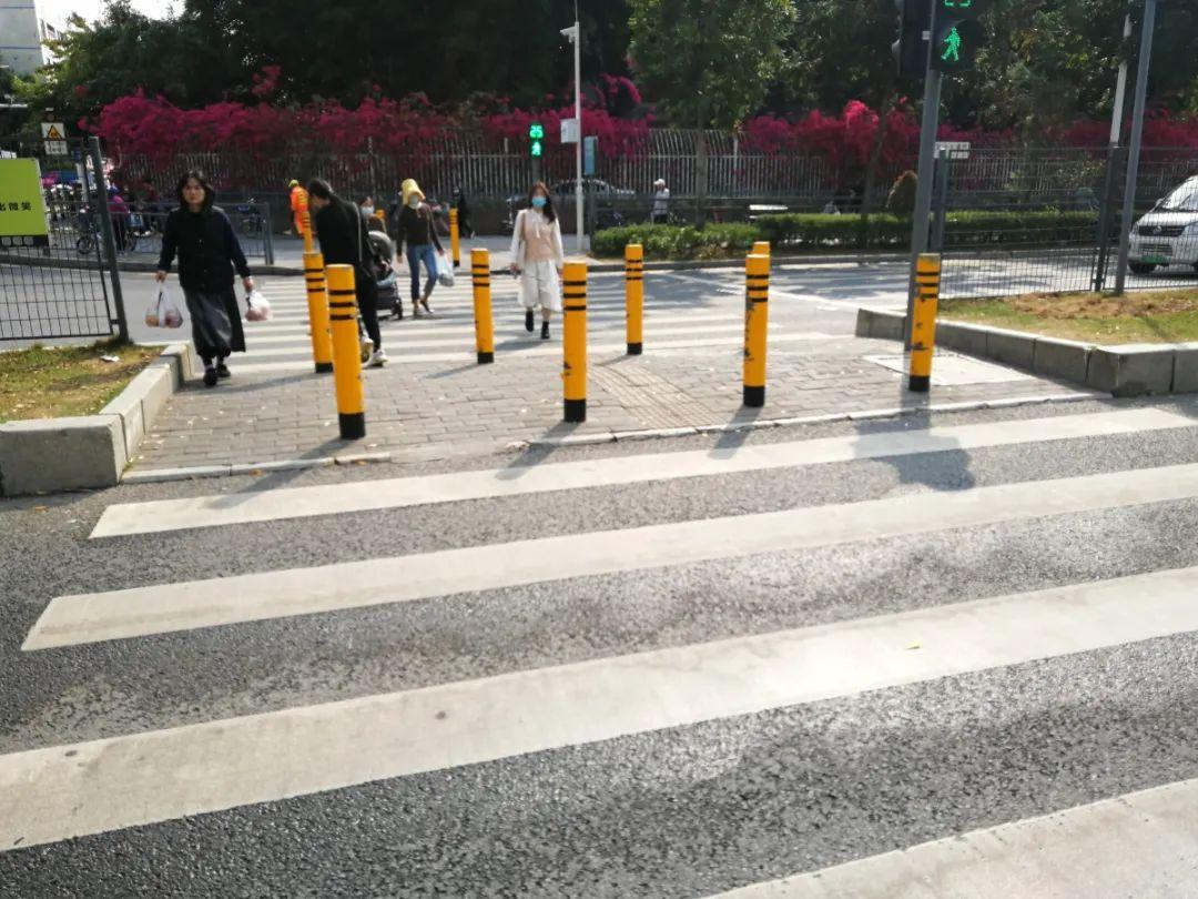 为防止机动车失控冲撞学校、医院区域,保障学生上下学出行安全,深汕合作区 33 所学校门前陆续竖起了一排整齐的增强型隔离柱。