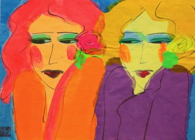 丁雄泉,双美图,纸上丙烯,21 × 30 cm