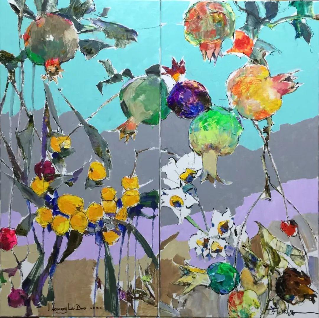 黄来铎,硕果,布面油彩,80 × 80 cm,2021