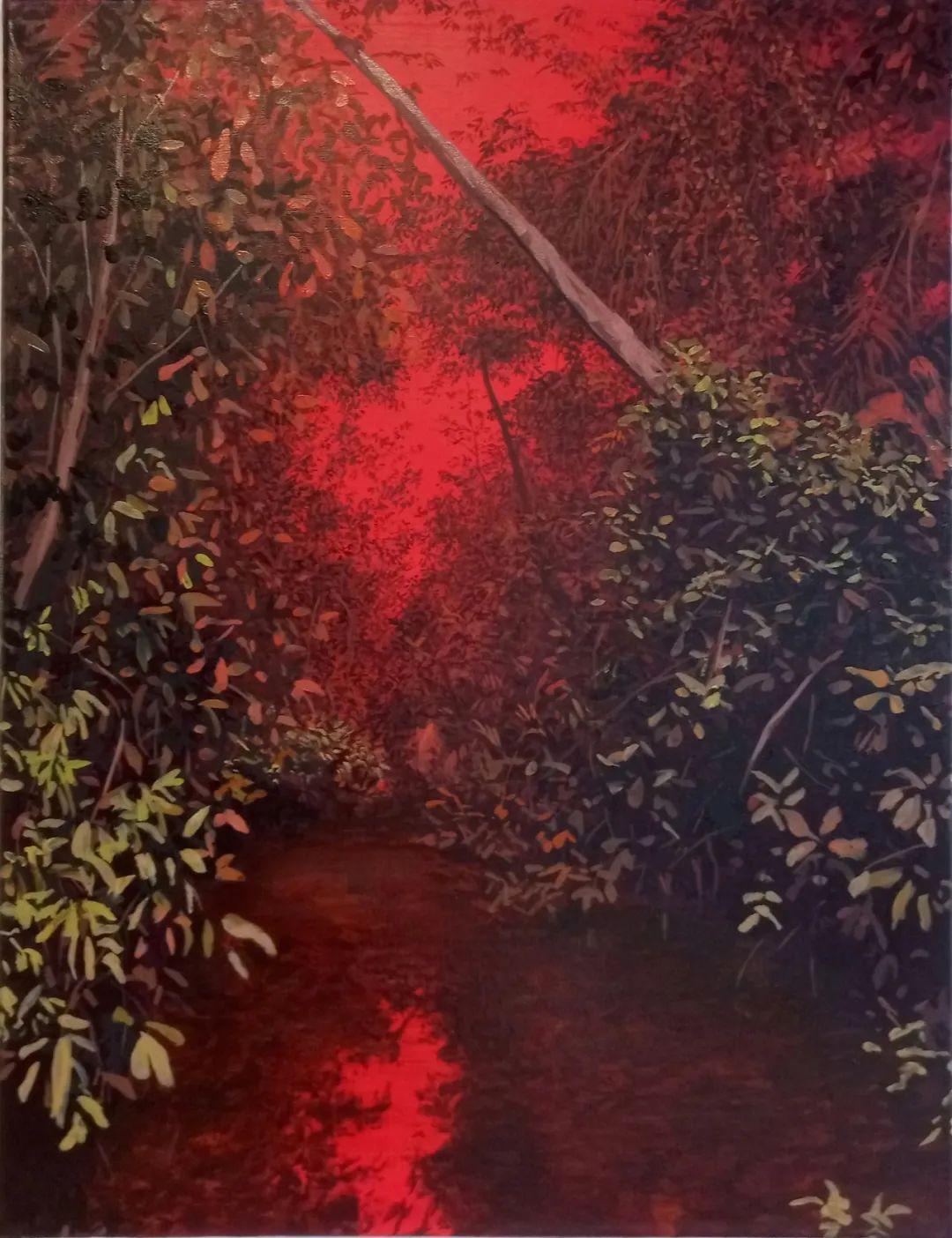 布鲁诺·加丹纳,河道 (红) ,布面油画,65 x 50 cm,2021