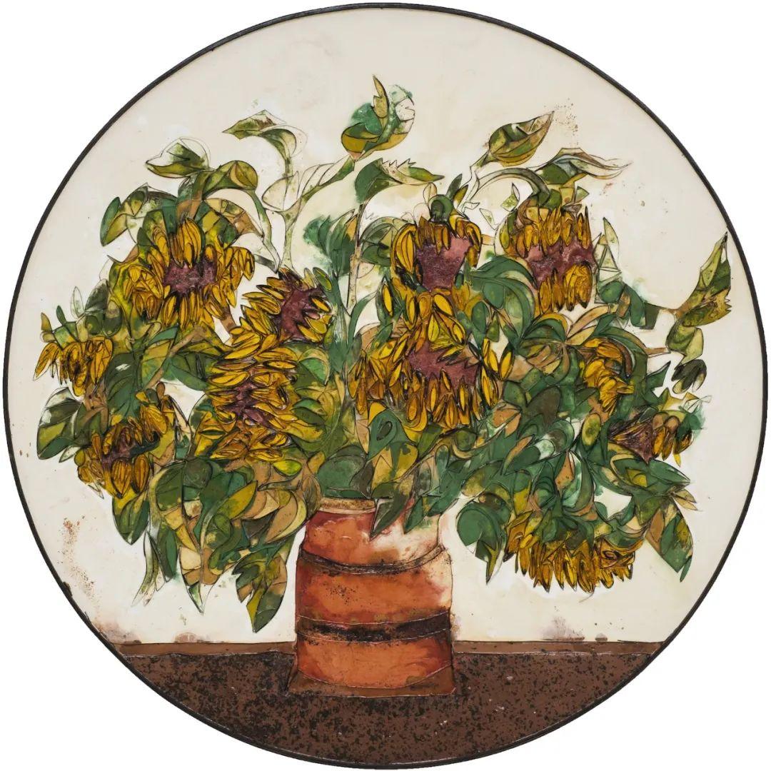雨果·席德,花束,石膏, 混凝土, 色粉, 木材 直径 150 cm, 深度 5 cm 2021