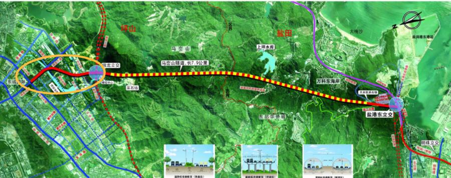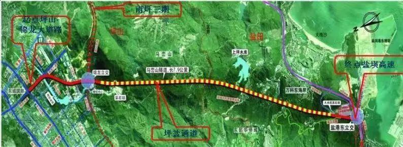 坪盐通道工程北起坪山区现状锦龙大道-坪山大道路口,南至盐田区盐坝高速、盐港东立交。