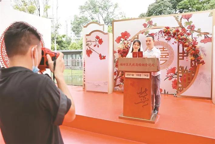 七夕恰逢周六,为了更好地满足新人们的需求,全市10个婚姻登记处全部开放,全天办理婚姻登记。据统计,8月14号,全市婚姻登记处共办理结婚登记761对。