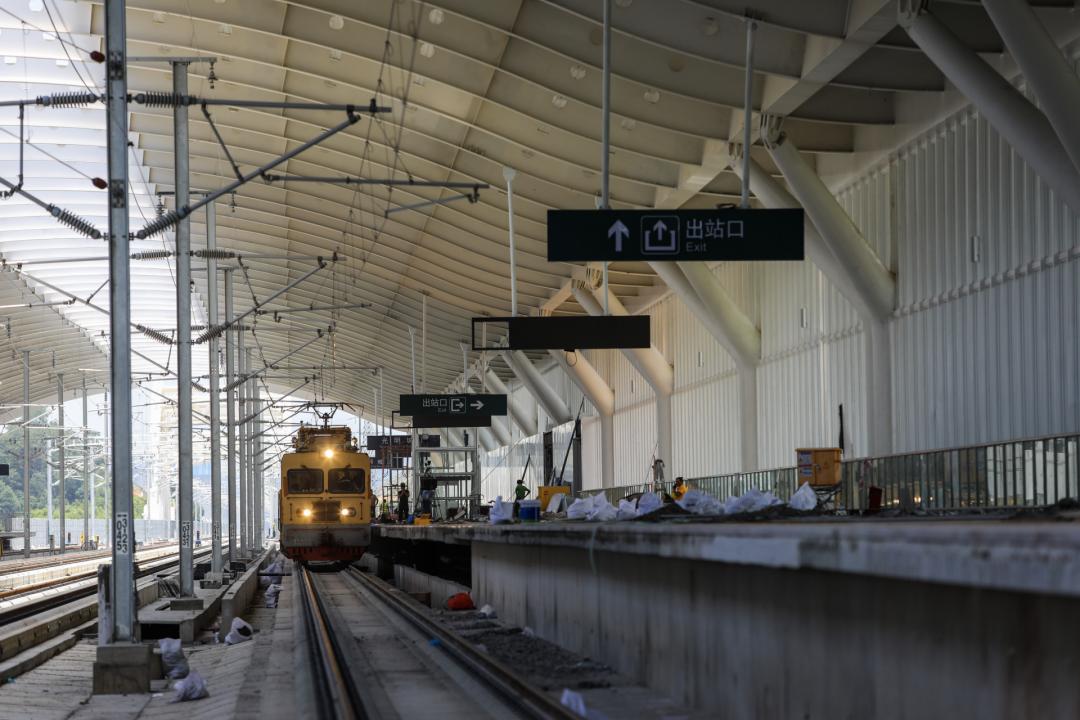 8月12日上午10点,一列由两辆接触网作业车组成的检测车组缓缓驶入赣深高铁光明城站。