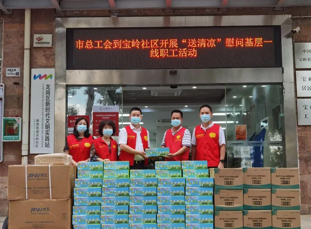 8月13日下午,办公室党支部组织党员赴南湾街道南岭社区开展“一对一”挂点联系服务及“送清凉”活动。支部党员分组来到社区卡口、小区物业、社康中心等多个防疫站点,积极参与疫情防控志愿服务、协助做好防疫宣传等工作并为一线抗疫工作人员送上防暑降温物品,向他们表达党和政府及工会组织的关怀和问候。