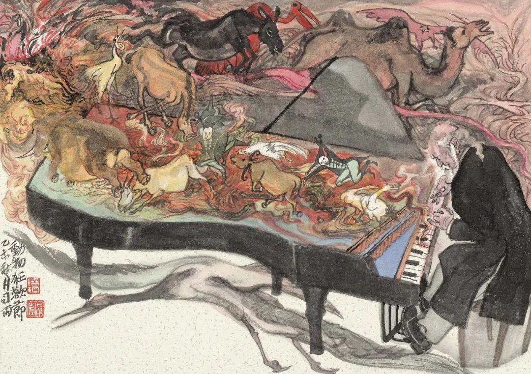 尉晓榕,动物狂欢节,纸本设色,38x53cm,2015