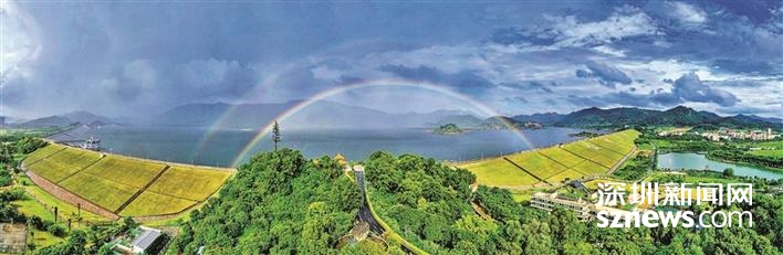 公明水库挂起了亮丽的双彩虹。